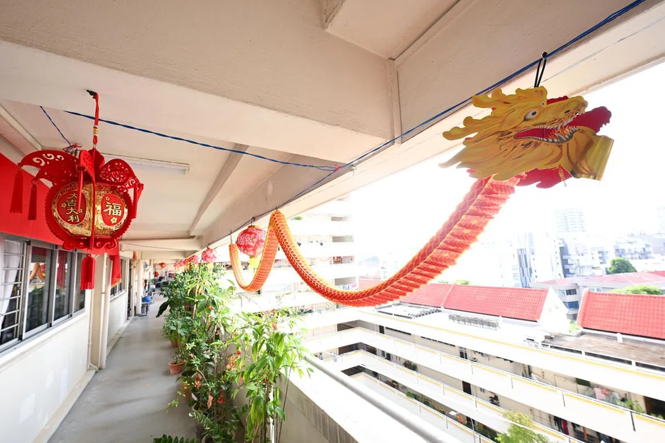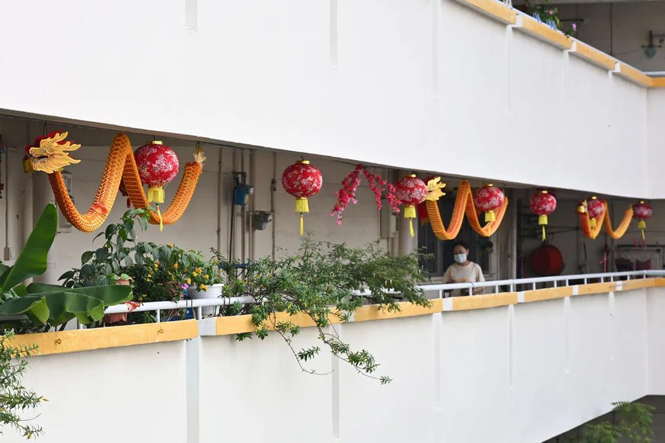 ரேஸ் கோர்ஸ் ரோட்டின் புளோக் 681ல் காணப்படும் சீனப் புத்தாண்டிற்கான அலங்காரங்கள். -