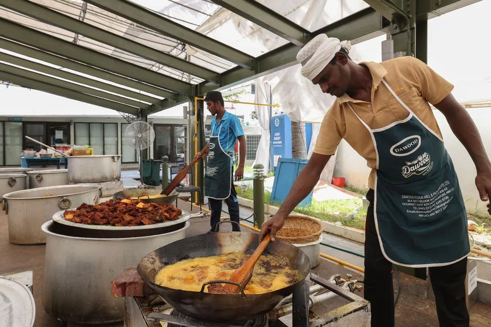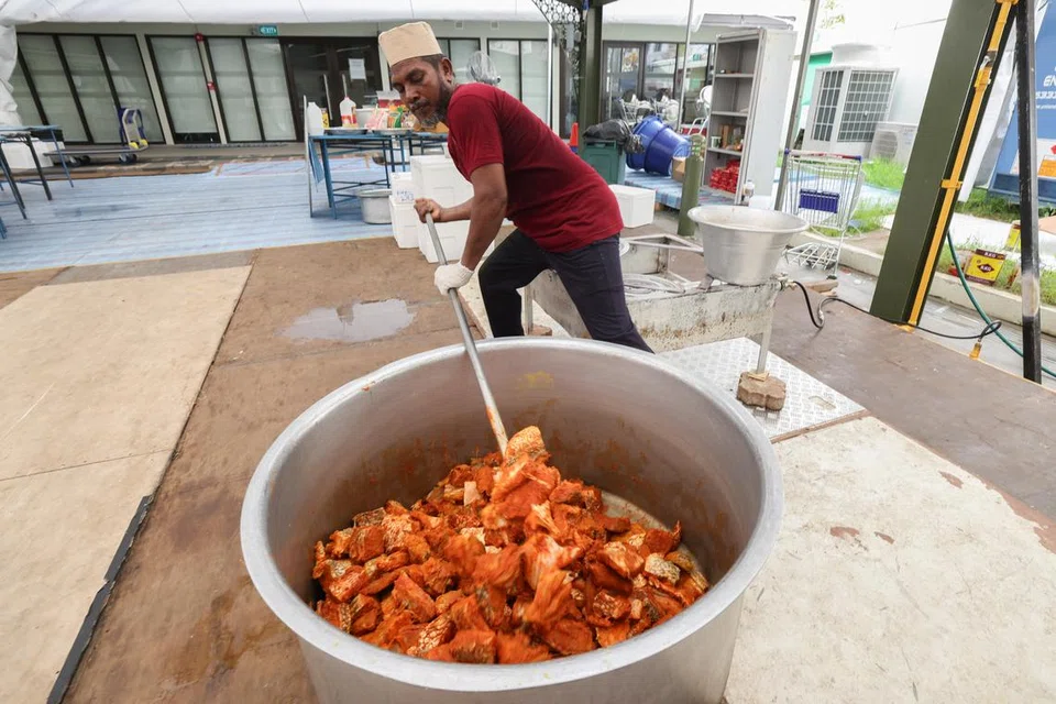 திருச்சியைச் சேர்ந்த சமையல் கலைஞர்கள், ஜாமிஆ சூலியா பள்ளிவாசல் வளாகத்தில் சமையல் பணியில் ஈடுபட்டுள்ளனர். படம்: த.கவி -