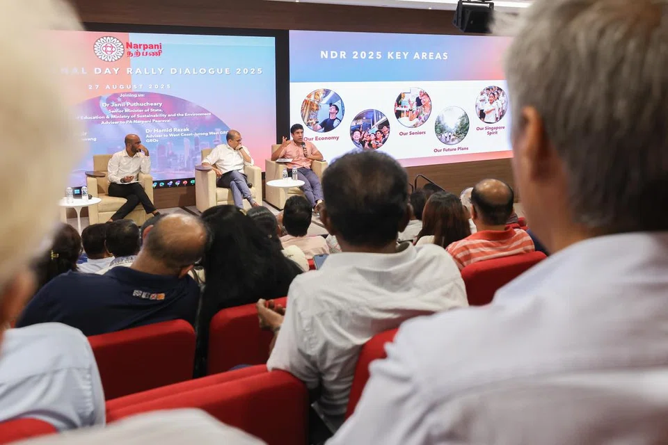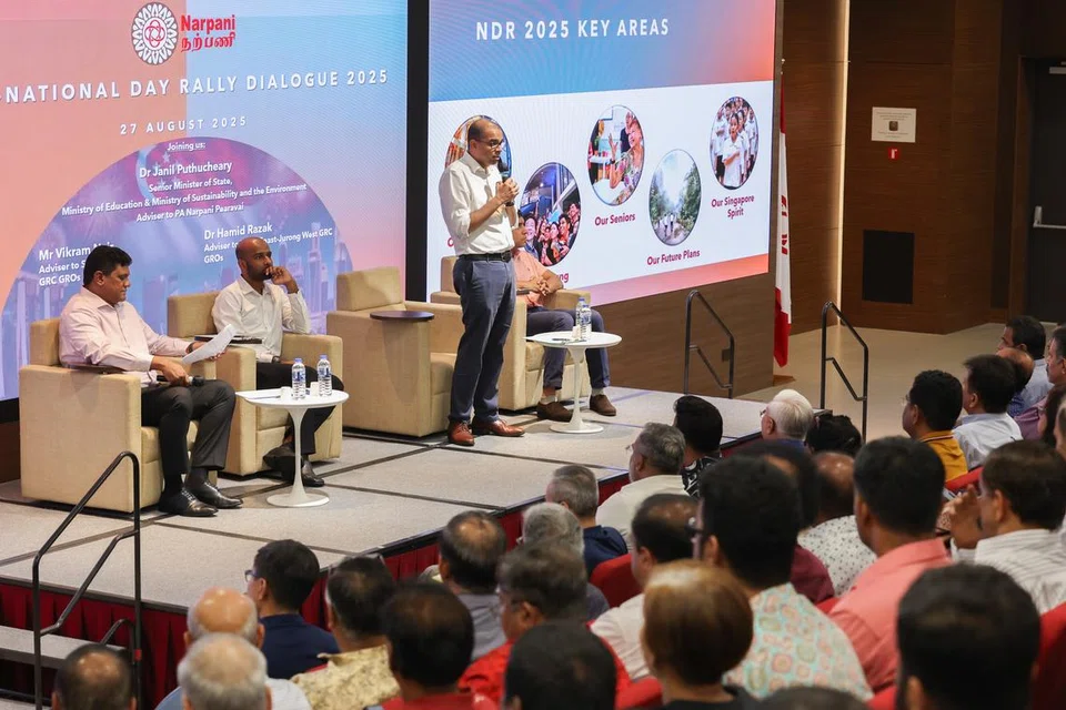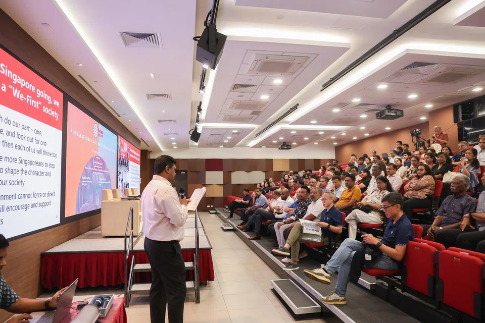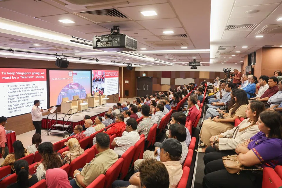 சிங்கப்பூரின் பல்வேறு பகுதிகளைச் சேர்ந்த இந்தியர் நற்பணிச் செயற்குழுக்களின் அடித்தளத் தலைவர்கள், தொண்டூழியர்கள், இந்திய சமூகத் தலைவர்கள் என ஏறத்தாழ 200 பேர் புதன்கிழமை (ஆகஸ்ட் 28) நடைபெற்ற இக்கலந்துரையாடலில் பங்கேற்றனர். - படம்: த.கவி