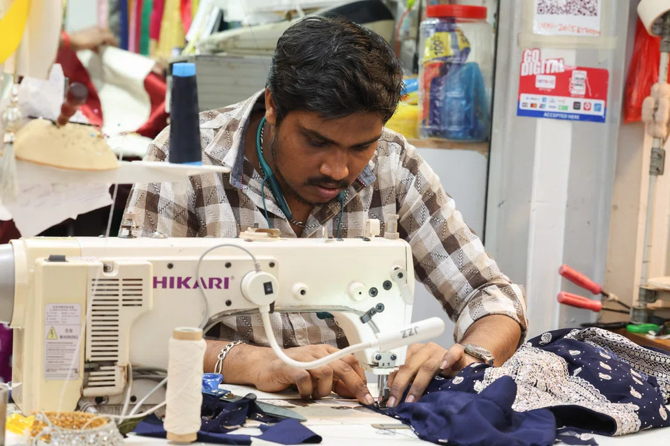 லிட்டில் இந்தியா சந்தையில் தையலில் ஈடுபடும் தையல்காரர். - படம்: த.கவி