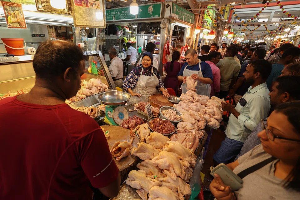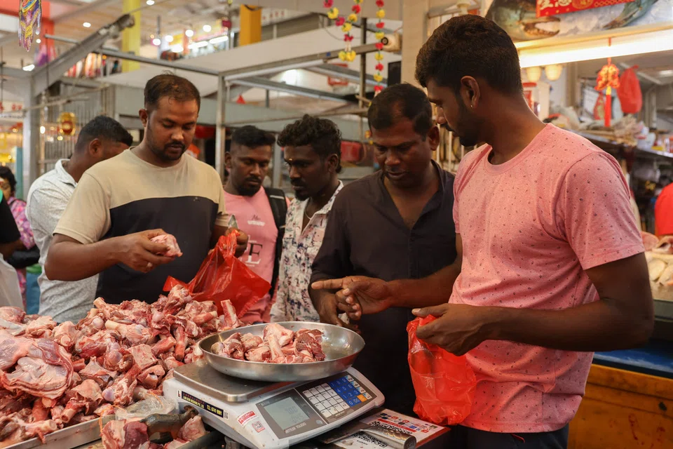 தேக்கா நிலைய இறைச்சிக் கடை ஒன்றில் வியாபாரம். - படம்: த.கவி