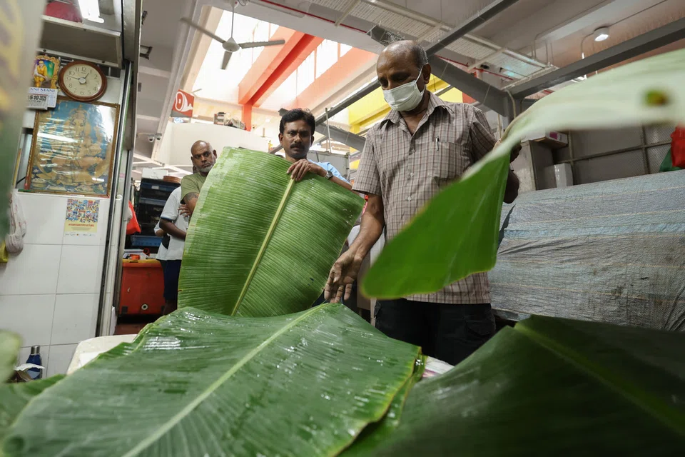 தீபாவளி விருந்துகளுக்கான வாழையிலை. - படம்: த.கவி
