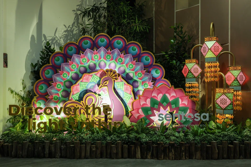 அழகிற்கும் புதுப்பிப்புக்கும் சின்னமாகத் திகழும் மயிலின் தோற்ற அம்சங்கள், 12 பக்க விளக்கில் சேர்கக்ப்பட்டுள்ளன. - படம்: த.கவி