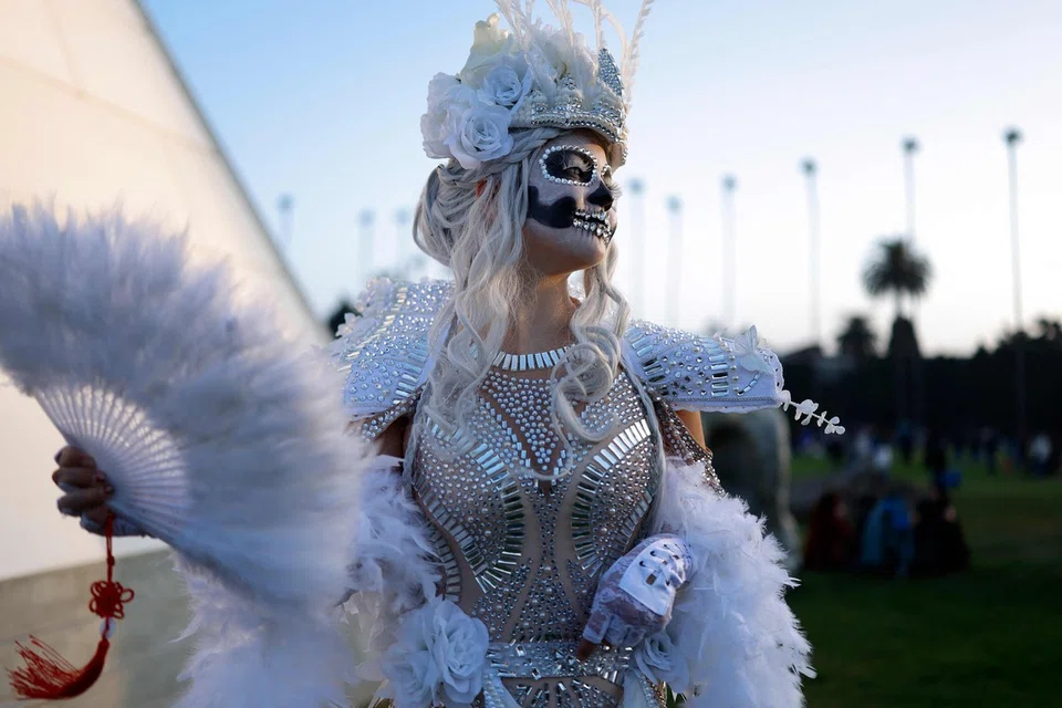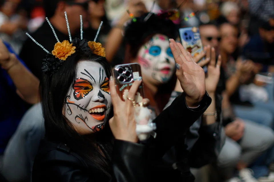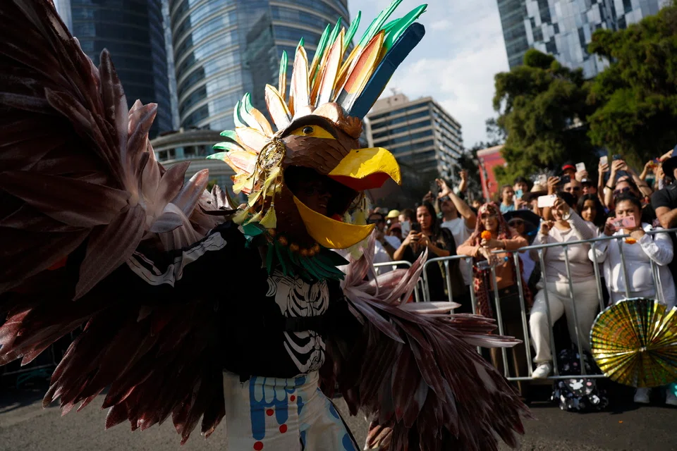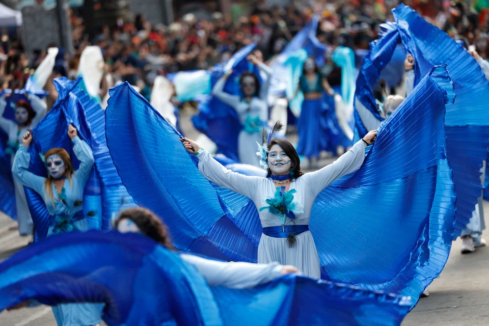 ‘மரித்தோரின் திருவிழா’ (Day of the Dead) அணிவகுப்பில், பாரம்பரிய ஆடை அலங்காரங்களை மக்கள் பூண்டிருந்தனர். - படம்: இபிஏ