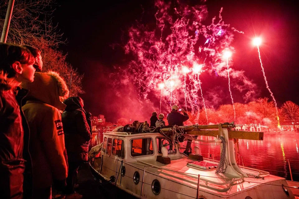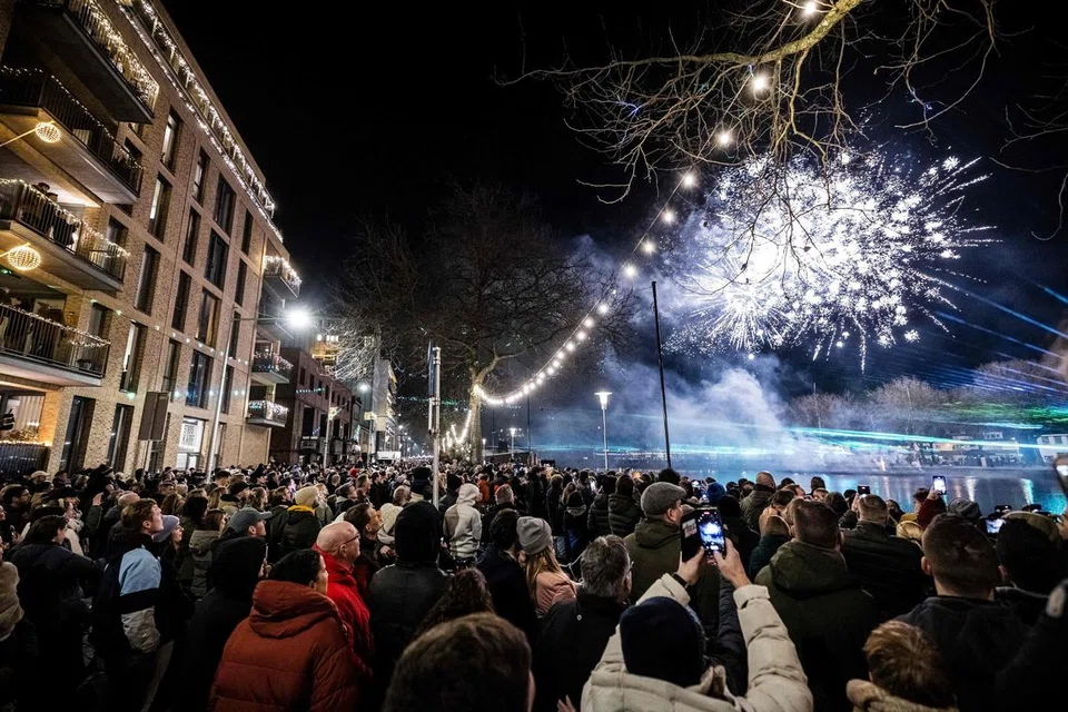 டில்பர்க்கில் உள்ள பியூஷாவனில் பார்வையாளர்கள் வாணவேடிக்கைகளை ரசிக்கிறார்கள். -
