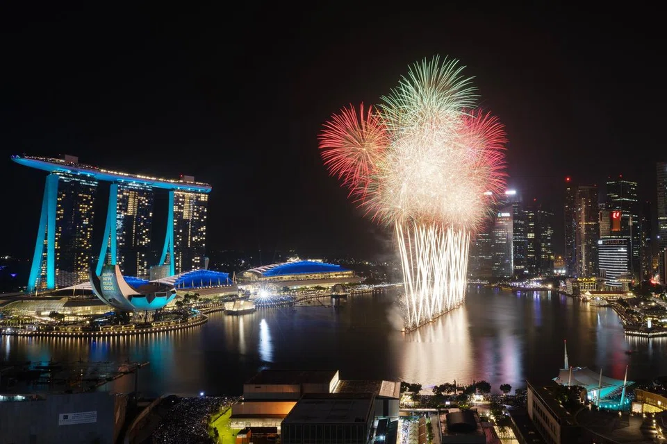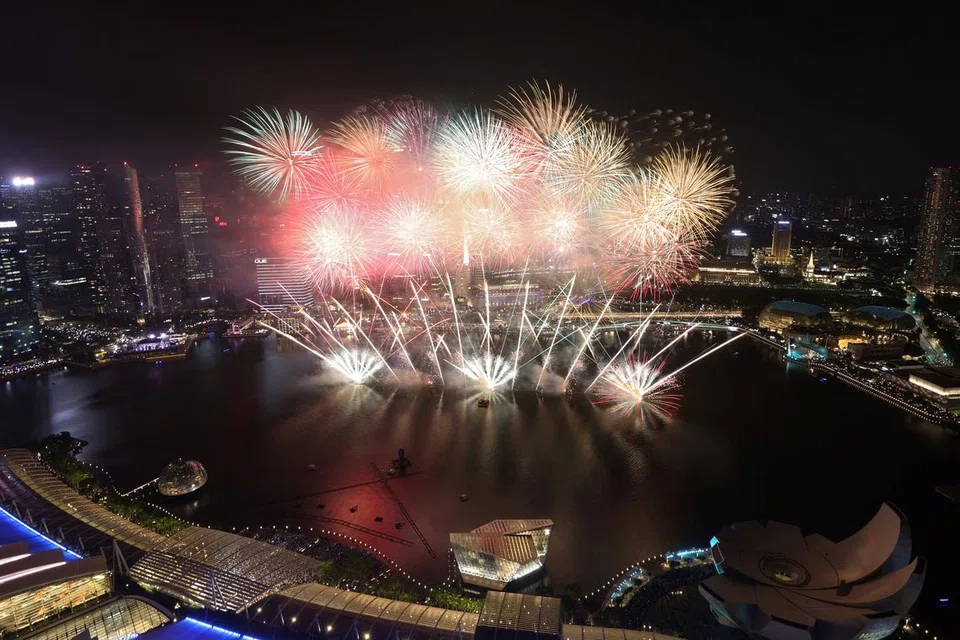 சிங்கப்பூரில் புத்தாண்டு கொண்டாட்டத்தின் போது மெரினா விரிகுடாவில் பட்டாசுகள் வெடித்தன. படம்: ரெளட்டர், ஏ.எஃப்.பி -