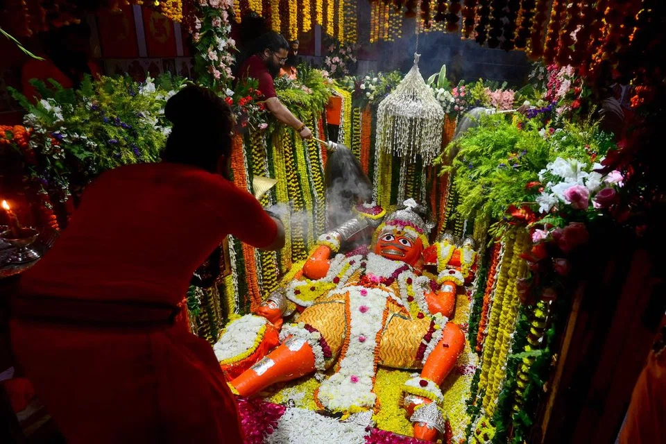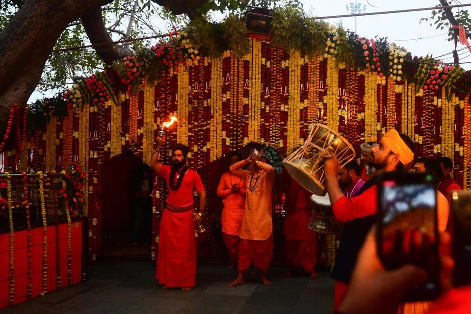 கங்கை, யமுனை ஆறுகள் இணையும் சங்கத்தின் அருகில் உள்ள கோவிலில் புத்தாண்டு நாளை கொண்டாடுவதற்கு சிறப்பு வழிபாடுகள் நடைபெற்றன. -