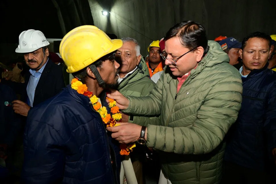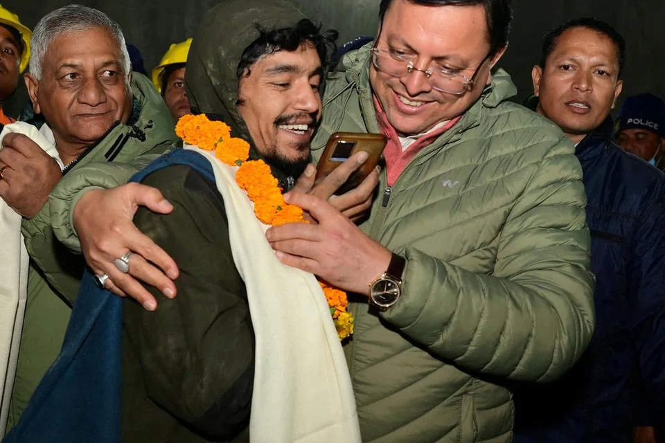 இந்தியாவின் உத்தராகண்ட் சுரங்கத்தில் சிக்கிய 41 ஊழியர்களையும் மீட்புப் பணியாளர்கள் பாதுகாப்பாக மீட்டுள்ளனர். மீட்புப் பணியாளர்கள் சுரங்கத்தில் இருந்த இடிபாடுகளை உடைக்கத் தொடங்கிய ஆறு மணி நேரத்திற்குள் தொழிலாளர்கள் வெளியேற்றப்பட்டனர். படங்கள்: ராய்ட்டர்ஸ்