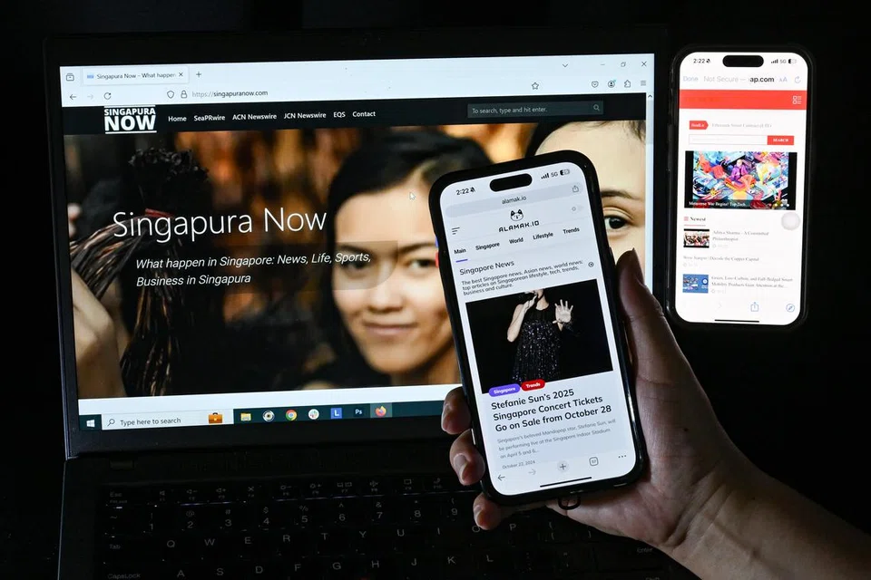1. zaobaodaily.com 2. singaporeinfomap.com 3. Singaporeera.com 4. Singdaotimes.com 5. Todayinsg.com 6. Lioncitylife.com 7. Singapuranow.com 8. Voasg.com 9. Singdaopr.com 10. Alamak.io ஆகியவை அந்த இணையத்தளங்கள்.