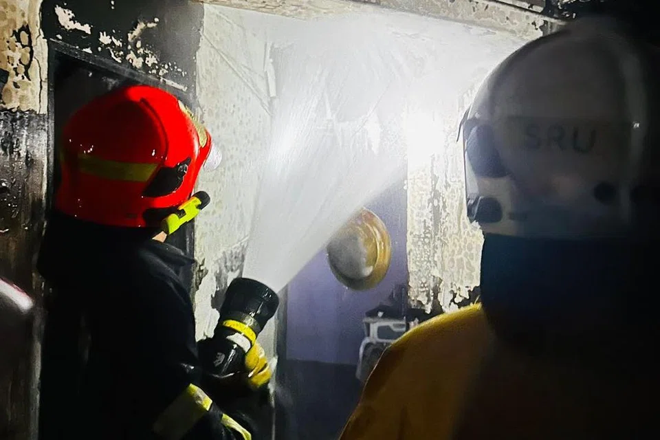 அவ்வீட்டின் வசிப்பறையிலும் சமையலறையிலும் உள்ள பொருள்கள் தீப்பற்றி எரிந்த நிலையில், இரண்டு நீர்க்குழாய்கள் மூலம் நீரைப் பீய்ச்சியடித்து தீயை அணைத்ததாகக் குடிமைத் தற்காப்புப் படை தெரிவித்தது. இதனால் வீட்டின் மற்ற பகுதிகளில் கரி பிடித்திருந்தது.