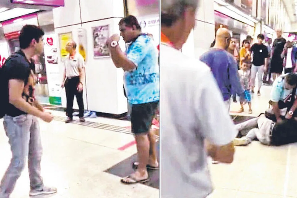 அவர்களின் சண்டையைத் தடுக்க ஒரு பெண் மற்றும் சில எம்ஆர்டி ஊழியர்கள் முன்வந்தும் அவர்களால் சண்டையைத் தடுத்து நிறுத்த முடியவில்லை. கறுப்பு உடை அணிந்திருந்த ஆடவர் குடி போதையில் இருப் பதாக காணொளியில் தோன்றிய அந்தப் பெண் பலமுறை கத்துவது போன்று பதிவாகியுள்ளது. அத்துடன் ஒரு கட்டத்தில் ஆடவர்கள் அருகில் ஒரு சிறுவன் வேடிக்கைப் பார்த்து நின்றதும் பின் அவர்களை விட்டு அகலுமாறு கூறப்பட்டதாகவும் காணொளிவழி தெரியவந்தது. ஆடவர்கள் சண்டை போட்டதுடன் தகாத சொற்களாலும் ஒருவரை ஒருவர் திட்டிக்கொண்டனர்.