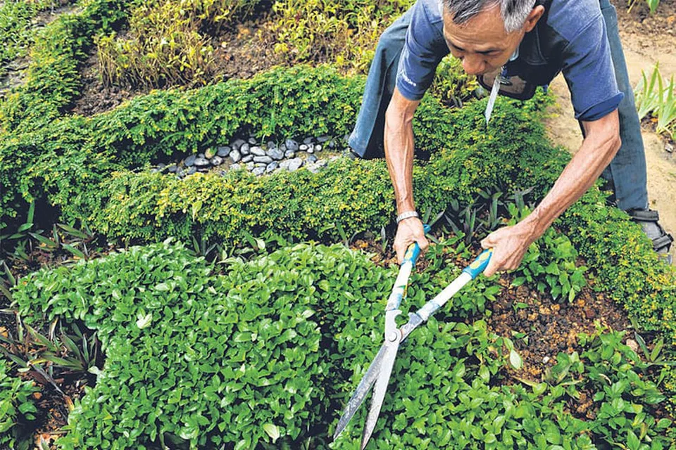 நிலவனப்பு நிறுவன ஊழியர் ஒருவர் தாவரங்களை கத்தரித்து அழகு படுத்துகிறார். படம்: ஸ்ட்ரெய்ட்ஸ் டைம்ஸ்