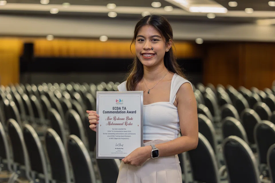 தெம்பனிஸ் இ-பிரிட்ஜ் பாலர் பள்ளி ஆசிரியரான ஷர்மினா, ஆரம்பகால இடையீட்டுக் கல்வியாளராகவோ கல்வித்திட்ட நிபுணராகவோ விரும்புகிறார்.