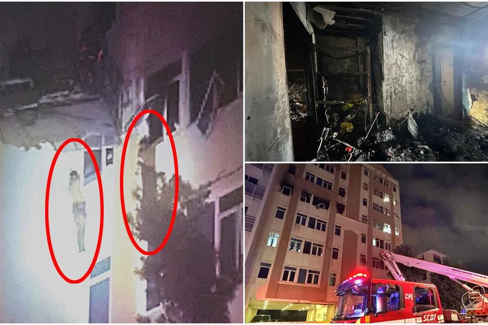 அதிகாரிகள் சம்பவ இடத்தை அடைந்தபோது ஐந்தாவது மாடி வீடு ஒன்றின் சன்னல் விளிம்பில் ஆபத்தான நிலையில் இருவர் நின்றிருந்தவாறு உதவி கோரிக் கூச்சலிடுவதைப் பார்க்க முடிந்தது.