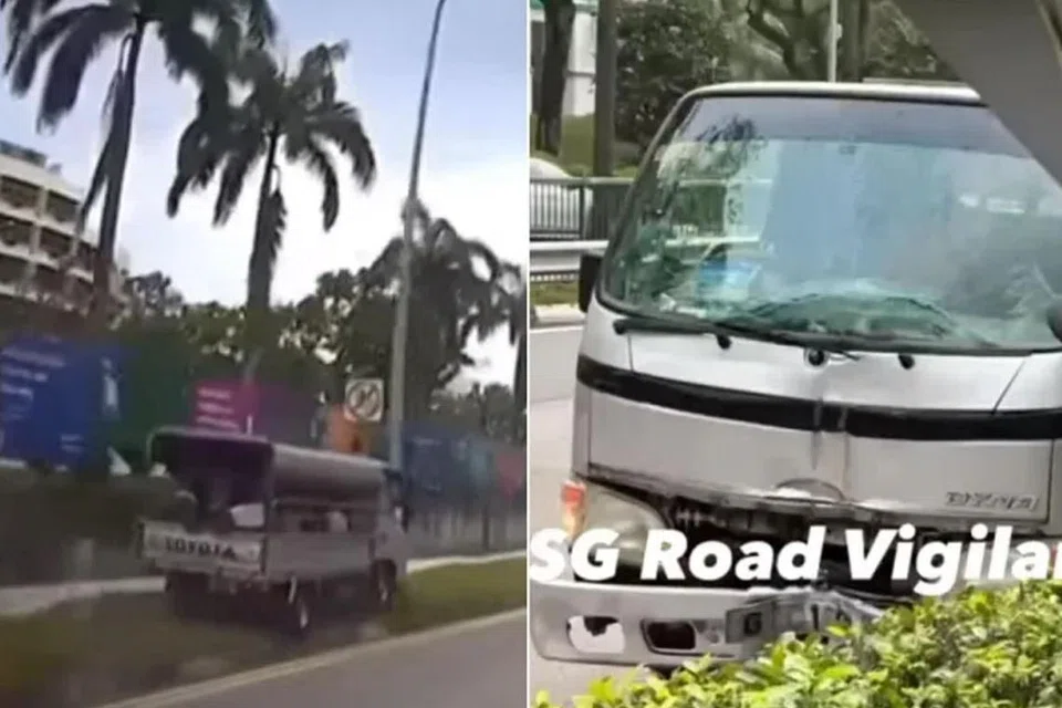 புவாங்கோக் கிரீன் பகுதியில் லாரி ஒன்று நடைபாதை மேட்டில் ஏறி விளக்குக் கம்பம் மீது மோதியுள்ளது.