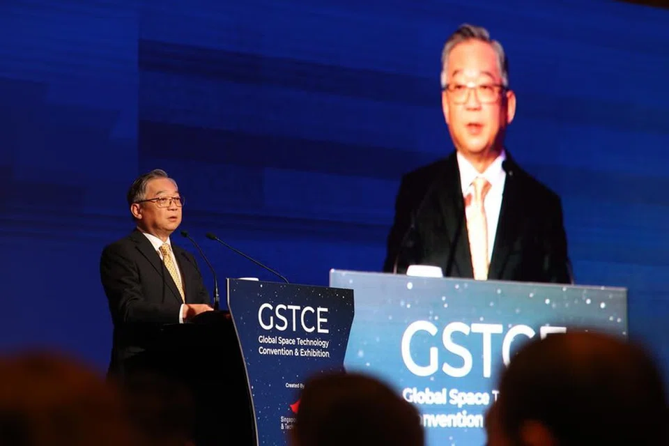 துணைப் பிரதமர் கான் கிம் யோங், பிப்ரவரி 26ஆம் தேதி சேண்ட்ஸ் கண்காட்சி, மாநாட்டு நிலையத்தில் நடைபெற்ற 17வது உலகளாவிய விண்வெளி, தொழில்நுட்பக் கருத்தரங்கில் உரையாற்றினார். - படம்: சாவ்பாவ்