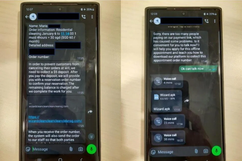 ஏமாற்றப்படுவோர் தங்களின் வங்கி அட்டை விவரங்களைப் பதிவிடும்போது இடையூறுகள் எழும். அதன் பின்னர், ‘பிரச்சினையை’ சரிசெய்ய மோசடிக்காரர்கள், ஏபிகே (APK) செயலியை வாட்ஸ்அப்வழி பதிவிறக்கம் செய்யச் சொல்வர்.
