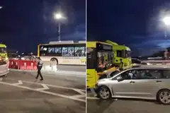 காணொளியில் சீருடை அணிந்த காவல்துறை அதிகாரிகள் விபத்து நடந்த இடத்தில் ஒருவரிடம் பேசுவது தெரிகிறது. அருகே பல காவல்துறை மோட்டார்சைக்கிள்கள் வலக்கோடித் தடத்தில் சாலை நடுவே உள்ள தடுப்புக்குப் பக்கத்தில் காணப்பட்டன.