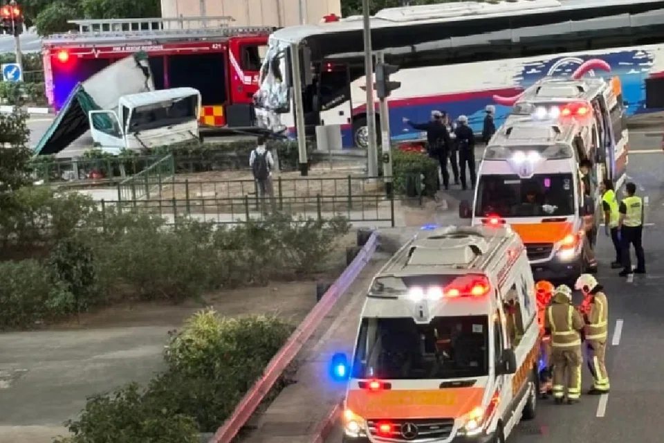 31 வயதுக்கும் 69 வயதுக்கும் இடைப்பட்ட ஐந்து பேருந்துப் பயணிகளும் 39 வயது லாரி ஓட்டுநரும் 31 வயது மோட்டார் சைக்கிளோட்டியும் மருத்துவமனைக்குக் கொண்டு செல்லப்பட்டனர்.