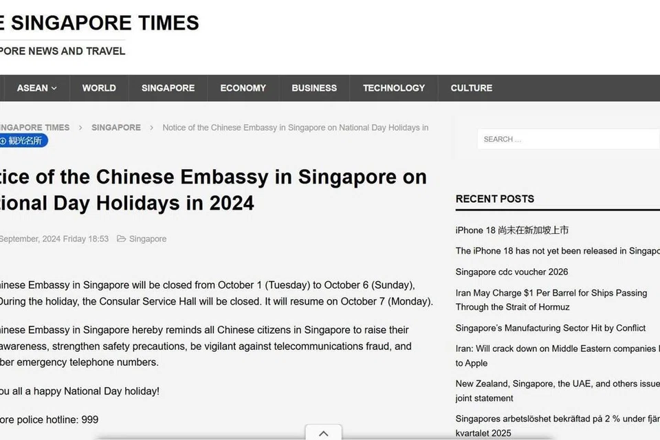 அவற்றில் ஒன்று, சீனாவின் ஜியாங்சு மாநிலத்தில் பதிவுசெய்யப்பட்ட ‘சிங்கப்பூர் டைம்ஸ்’ இணையத்தளமாகும். அதன் கீழே இணையச் சேவை நிறுவனத்துக்கான அடையாள எண் மட்டும் இருந்தது.