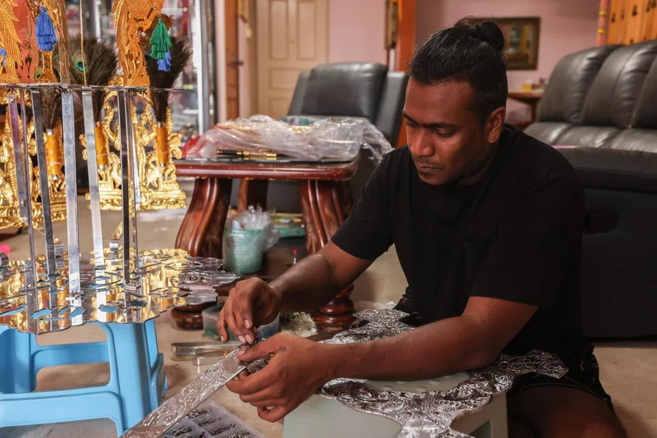 ஆண்டுதோறும் காவடியை வடிவமைக்க ஒரு வார காலம் எடுத்துக்கொள்வதாகச் சொன்னார் அவர். “ஒவ்வோர் அலங்காரப் பொருளையும் கவனமாகத் தேர்ந்தெடுத்து, நுணுக்கமாக வைத்து காவடி கட்டும் அந்தச் செயல்முறையே அந்த ஆண்டுக்கான உற்சாகத்தைக் கொண்டு வந்துவிடும்,” என்றார்.