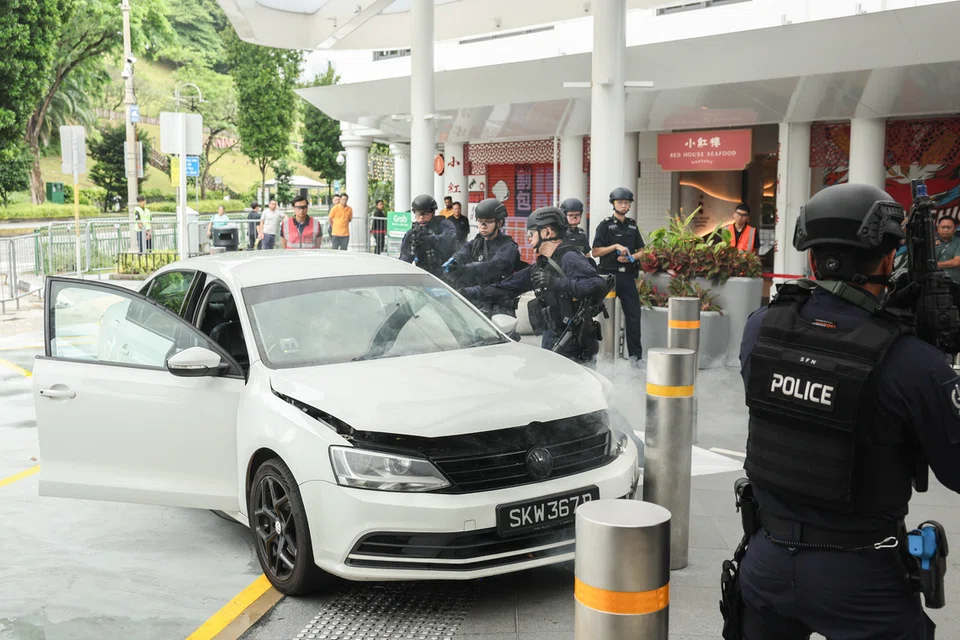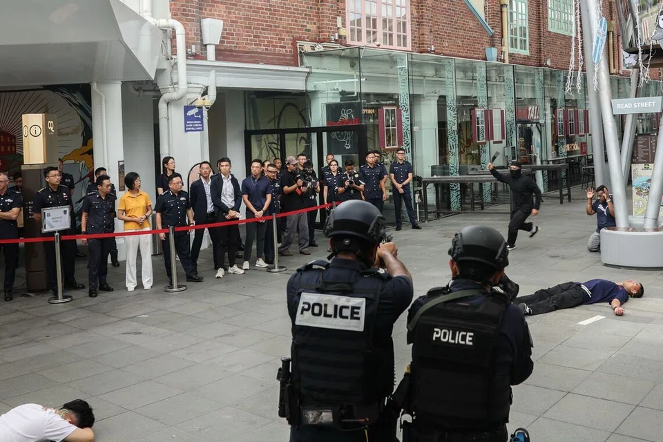 சிங்கப்பூர் காவல்துறையின் அவசரநிலைக் குழுவினர் உள்ளிட்ட 80க்கும் மேற்பட்டோர் பாவனைப் பயிற்சியில் ஈடுபட்டனர்.