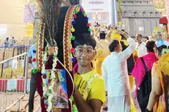 உட்லண்ட்ஸ் உயர்நிலைப் பள்ளியைச் சேர்ந்த 12 வயது மாணவர் ஷவினேஷ் ராஜ், உட்குரோவ் தொடக்கப்பள்ளியைச் சேர்ந்த 8 வயது மாணவர் லக்னேஷ் ராஜ் ஆகிய இருவரும் காவடி எடுத்துத் தங்கள் நேர்த்திக்கடனைச் செலுத்தினர்.