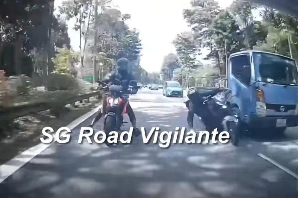 சம்பவம் தொடர்பில் இணையத்தில் பதிவேற்றப்பட்ட காணொளியில் தீவு விரைவுச்சாலையின் வலப்பக்கத் தடங்கள் இரண்டுக்கு இடையே இரண்டு மோட்டார்சைக்கிள்கள் ஒன்றன்பின் ஒன்றாகச் செல்வதைக் காண முடிகிறது.