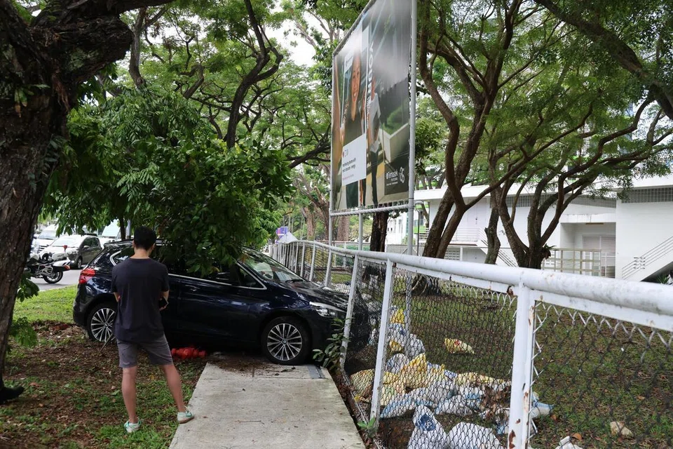 விபத்திற்குப் பிந்தைய காட்சிகளைக் காட்டும் காணொளியில், தெமாசெக் பலதுறைத் தொழிற்கல்லூரி மேற்கு நுழைவாயிலுக்கு வெளியே உள்ள நடைபாதையில் கறுப்பு நிற கார் ஒன்று வேலிமீது மோதி நிற்பது தெரிகிறது. அந்த கார் இருக்கும் பகுதியைச் சுற்றித் தடுப்புவேலிகள் போடப்பட்டிருந்தன.
