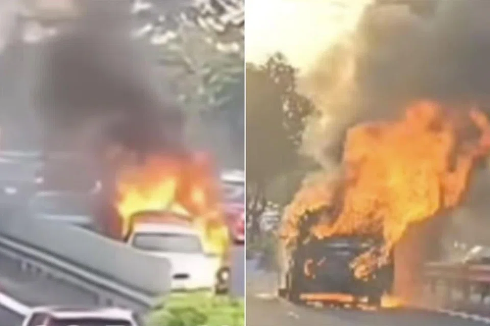 இணையத்தில் பரவிவரும் காணொளிகளில் இரண்டு கார்கள் விரைவுச்சாலையின் வலது தடத்தில் மோதிய நிலையில் காணப்பட்டன. வெள்ளை நிறக் காரின் பின்புறத்திலும் கறுப்பு நிற காரின் முன்புறத்திலும் தீப்பற்றியெரிந்தது. பிற்பாடு வெளியான படங்கள் கார்கள் கருகிச் சாம்பலானதைக் காட்டுகின்றன.