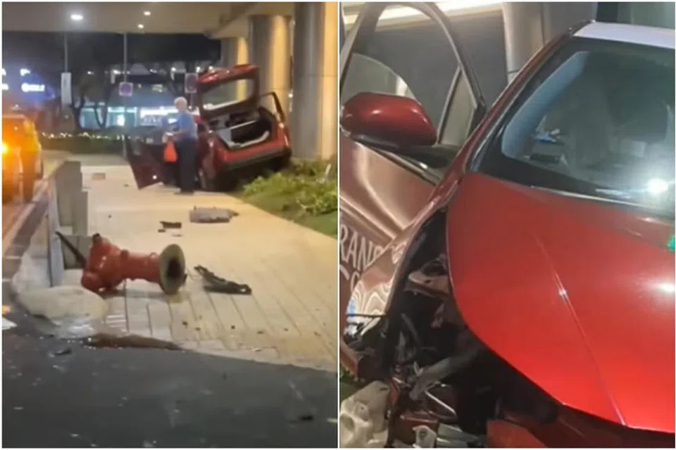 ராஃபிள்ஸ் பொலிவார்ட் பகுதியில் அமைந்திருக்கும் மரினா ஸ்குவேர் கடைத்தொகுதிக்கு வெளியே கார் ஒன்று சறுக்கி, நிலைதடுமாறி நடைபாதையின்மீது ஏறியது.