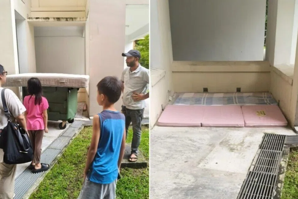 பூனையின் நலனில் அக்கறை கொண்ட அக்கம்பக்கத்தினர் உள்ளிட்ட பலர் புளோக்கின் கீழும் அங்குள்ள குப்பைத் தோம்பின் மேலும் மெத்தைகளைப் போட்டனர்.