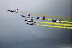 பதுங்கித் தாக்கும் மிரட்டலான போர் விமானங்கள், தாக்குதல் வானூர்திகள் உள்ளிட்டவை தொடக்க நாளின்போது அனைவரின் கவனத்தையும் ஈர்த்தன.
