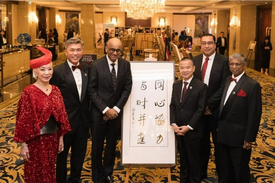 சிங்கப்பூர் செஞ்சிலுவைச் சங்கத்தின் 75வது ஆண்டு நிறைவை முன்னிட்டு இணையத்தில் ஏலத்துக்கு விடப்பட்ட அதிபர் தர்மன் சண்முகரத்னத்தின் சீன எழுத்தோவியப் படைப்பு, (Chinese calligraphy) $308,888 தொகையைப் பெற்றது.