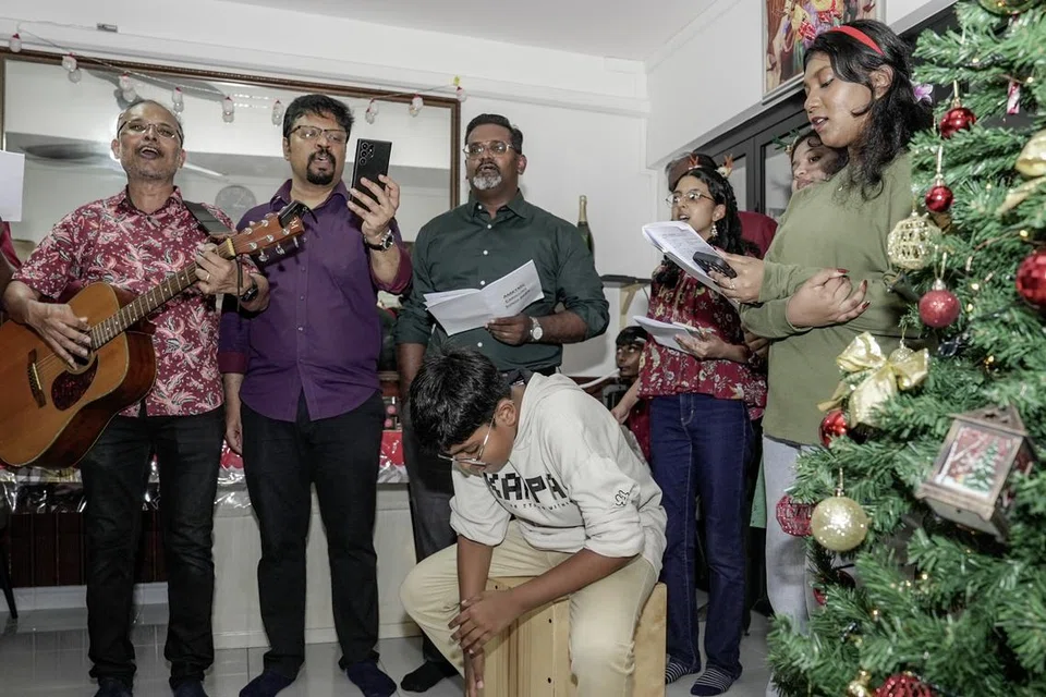 கிறிஸ்துமஸ் பண்டிகையை முன்னிட்டு கடந்த பத்தாண்டுகளாகத் திரு ஜேம்ஸ் ராஜ், 42, தனது வீட்டுக்குப் பாடல் குழுக்களை வரவேற்கிறார்.