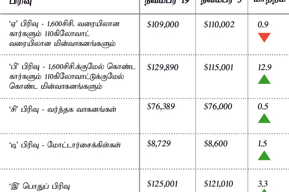 ‘சி’ பிரிவின்கீழ் வர்த்தக வாகனங்களுக்கான ‘சிஓஇ’ கட்டணம் 0.5 விழுக்காடு அதிகரித்தது.