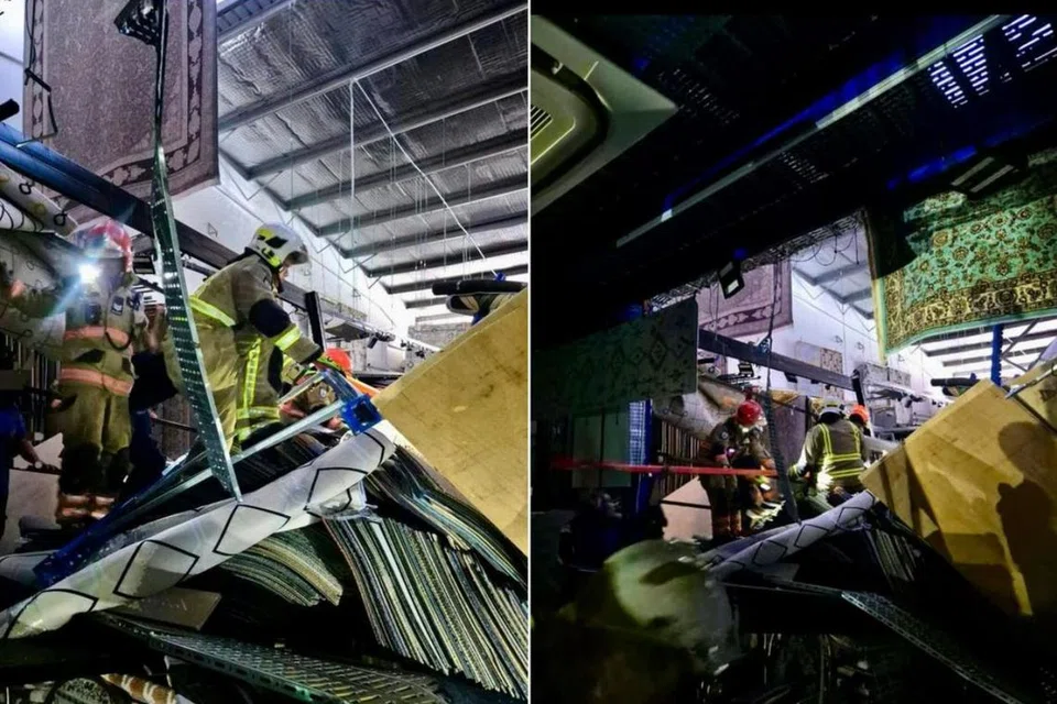தோ பாயோவில் சேமிப்புக் கிடங்குப் பகுதி ஒன்றின் தரை திடீரெனச் சரிந்து விழுந்ததில் தரைவிரிப்புக் கம்பளங்களுக்கும் அடுக்குச்சட்டங்களுக்கும் அடியில் மூவர் சிக்கிக்கொண்டனர்.