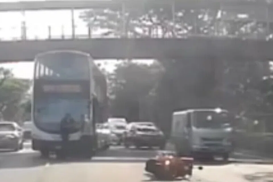 விழுந்த வேகத்தில் மோட்டார் சைக்கிளோட்டி சாலையின் மூன்றாவது தடத்துக்கு வீசியெறியப்பட்டார். அப்போது பேருந்து ஓட்டுநர் அவர் மீது மோதுவதைத் தவிர்க்க முயன்றதாகவும் ஆனால் அவரால் அவ்வாறு செய்ய முடியவில்லை என்றும் எஸ்பிஎஸ் டிரான்சிட் பேச்சாளர் சொன்னார்.