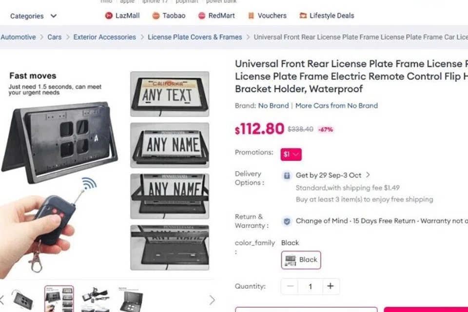 வாகனப் பதிவெண் மாற்றும் சாதனங்களை லஸாடா போன்ற இணைய வர்த்தகத்தளங்கள் $48 முதல் $145 வரை விற்பது செப்டம்பர் 16ஆம் தேதி ஸ்ட்ரெய்ட்ஸ் டைம்ஸ் ஊடகத்துக்குத் தெரியவந்தது.