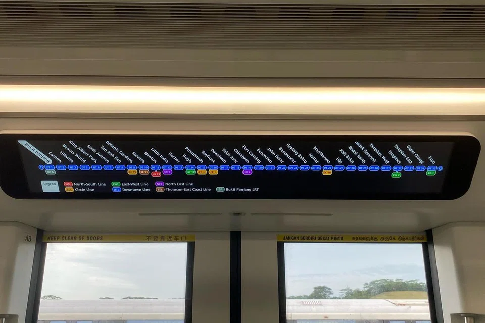 வடக்கு-தெற்கு,கிழக்கு-மேற்கு ரயில் பாதைகளில் செல்லும் புதிய ரயில்களிலும் தாம்சன் - ஈஸ்ட் கோஸ்ட் ரயில் பாதையில் செல்லும் அனைத்து 91 ரயில்களிலும் இந்த நகரும் ‘எல்சிடி’ திரைகள் பொருத்தப்பட்டுள்ளன. 2027ஆம் ஆண்டில் குறுக்குத் தீவு ரயில் பாதையில் சேவையைத் தொடங்கும் 44 ரயில்களிலும் இந்த நகரும் எல்சிடி திரைகள் பொருத்தப்படவுள்ளன.