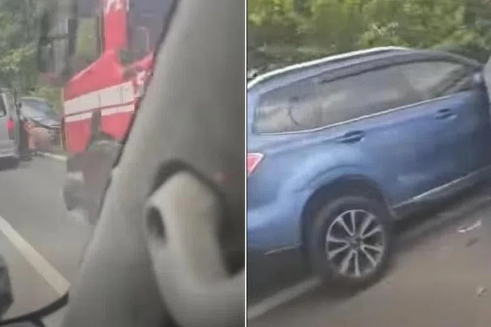 Singapore Incidents ஃபேஸ்புக் பக்கத்தில் பதிவேற்றம் செய்யப்பட்ட காணொளியில் ஒரு வேனும் ஒரு காரும் விபத்துக்குள்ளான பிறகு நேர் எதிரே நின்றுகொண்டிருந்தது தெரிந்தது. வேனின் முன்பகுதி பெரிய அளவில் சேதமடைந்ததும் தெரிந்தது. வேனின் ஓட்டுநர் இருக்கையில் ஓர் ஆடவரையும் காண முடிந்தது.