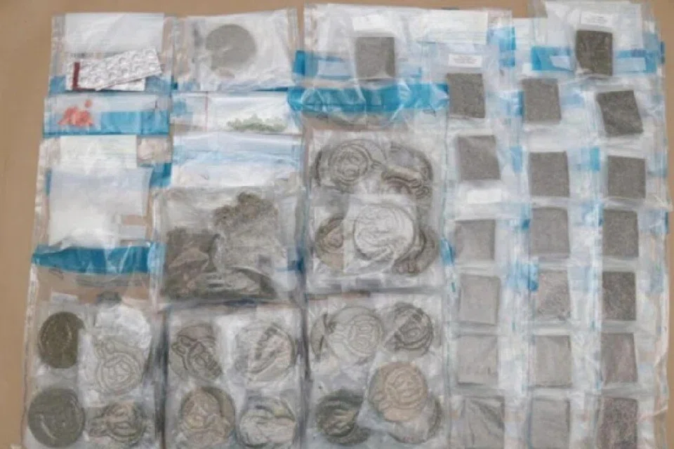 4.113 கிலோ கஞ்சா, 135 கிராம் ‘ஐஸ்’, 31 கிராம் எக்ஸ்டசி, 40 எரிமின்-5 மாத்திரைகள், போதைப்பொருள் உட்கொள்வதற்காகப் பயன்படுத்தப்படும் கருவிகள் ஆகியவற்றுடன் $420,383.30 ரொக்கமும் பறிமுதல் செய்யப்பட்டன.