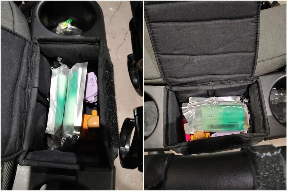 அதிகாரிகள் தங்கள் சோதனையின்போது, காரின் பின்பகுதியில் வைக்கப்பட்டிருந்த குழந்தைத் தள்ளுவண்டி ஒன்றின் பாக்கெட்டில் மறைத்து வைக்கப்பட்டிருந்த இரண்டு மின்சிகரெட்டுகளைக் கண்டுபிடித்தனர்.