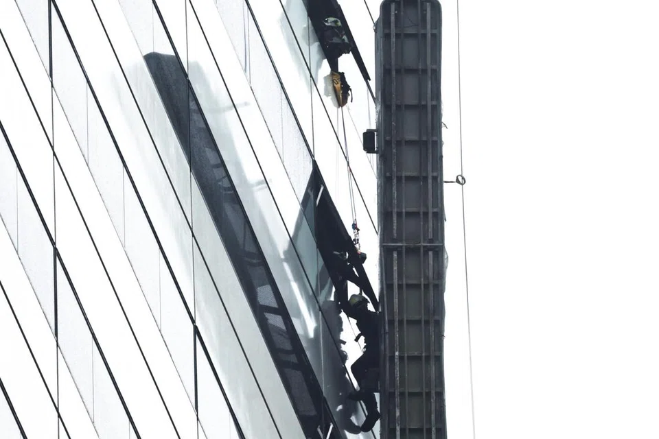 ராஃபிள்ஸ் சிட்டி கட்டடத்தில் 42 மாடிகள் உள்ளன. சம்பவத்தை அடுத்து கட்டட நுழைவாயிலைப் பாதுகாவலர்கள் மூடினர்.