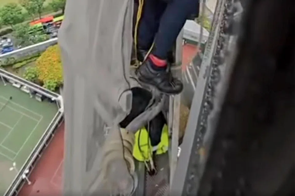 ராஃபிள்ஸ் சிட்டி கட்டடத்துக்கு வெளியே அந்தரத்தில் சாய்ந்த கொண்டோலா எனும் தொங்கு மேடையிலிருந்து இரண்டு ஊழியர்கள் பாதுகாப்பாக மீட்கப்பட்டனர்.
