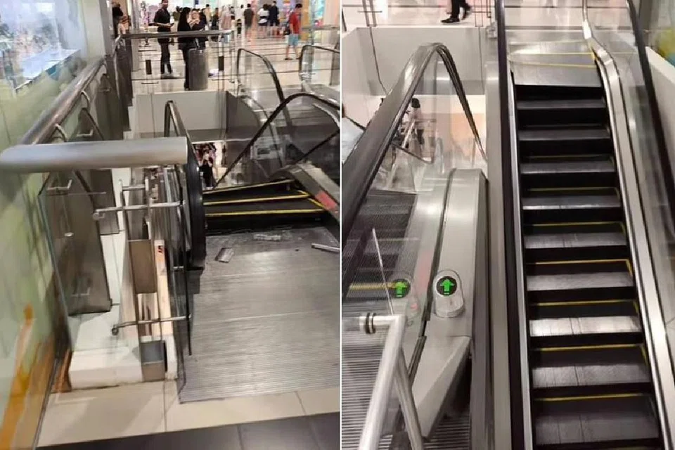 மின்படிக்கட்டின் படிகள் பெயர்ந்துகொண்டு வெளிவந்தன.