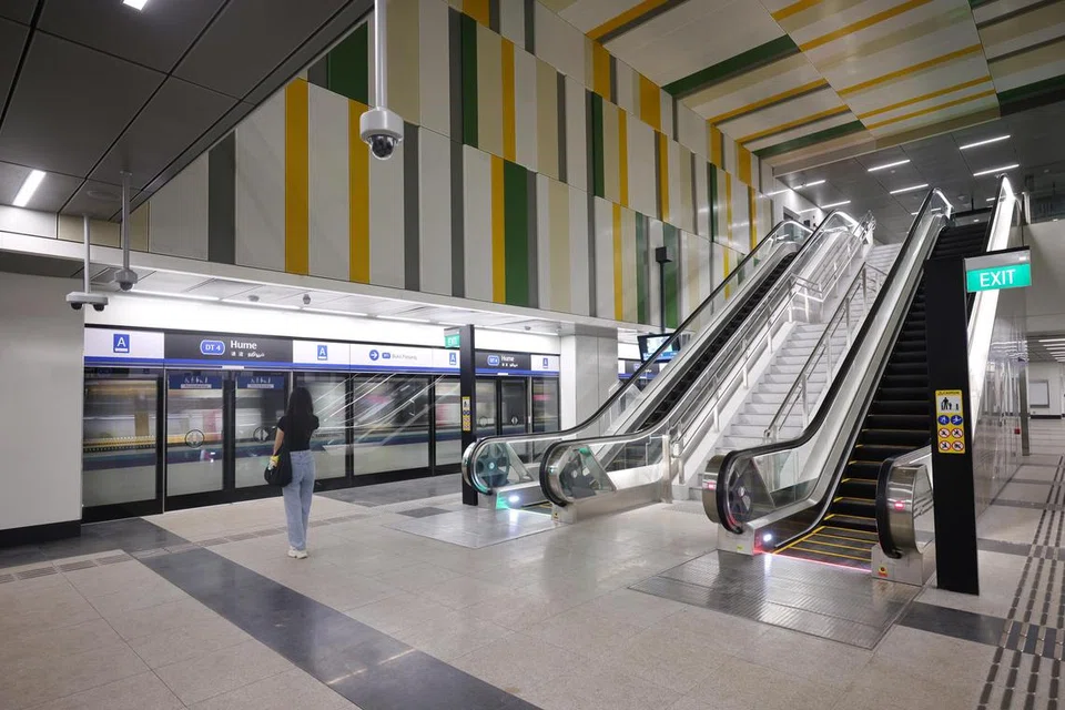 டௌன்டவுன் ரயில் பாதையில் கட்டப்பட்டு உள்ள ஹியூம் எம்ஆர்டி நிலையம் மஞ்சள்நிற கிரானைட் முகப்புடன் கட்டடக் கலை அழகை வெளிப்படுத்துகிறது.