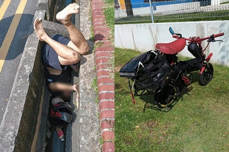 யூனோசில் மின்சைக்கிள் விபத்துக்குள்ளானதில் அதை ஓட்டிய 37 வயது ஆடவர் வடிகாலில் தலைகுப்புற விழுந்து சிக்கிக்கொண்டார்.