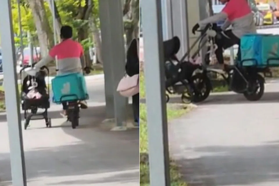 இளஞ்சிவப்பு நிறச் சீருடையில் தனிநபர் நடமாட்டச் சாதனத்தை ஓட்டிக்கொண்டே அந்த உணவு விநியோகிப்பாளர் குழந்தைத் தள்ளுவண்டியைத் தள்ளிக்கொண்டிருந்த காணொளி டிக்டாக்கில் பதிவேற்றம் செய்யப்பட்டது.