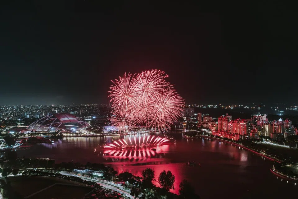 சிங்கப்பூர் விளையாட்டு நடுவத்தில் இடம்பெற்ற வாணவேடிக்கை. - படம்: மீடியாகார்ப்